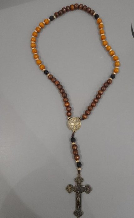 TR-026 - TERÇO MADEIRA n°12 PAI NOSSO COM TULIPA
